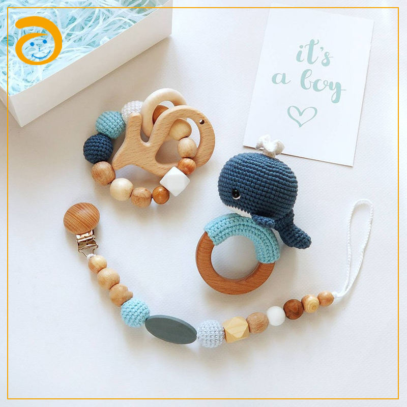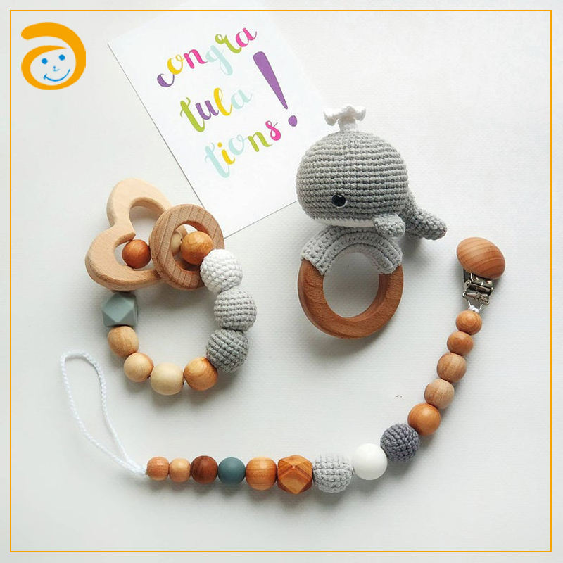 De Madera de ganchillo sonajero bebé juguete mordedor juguete de dentición