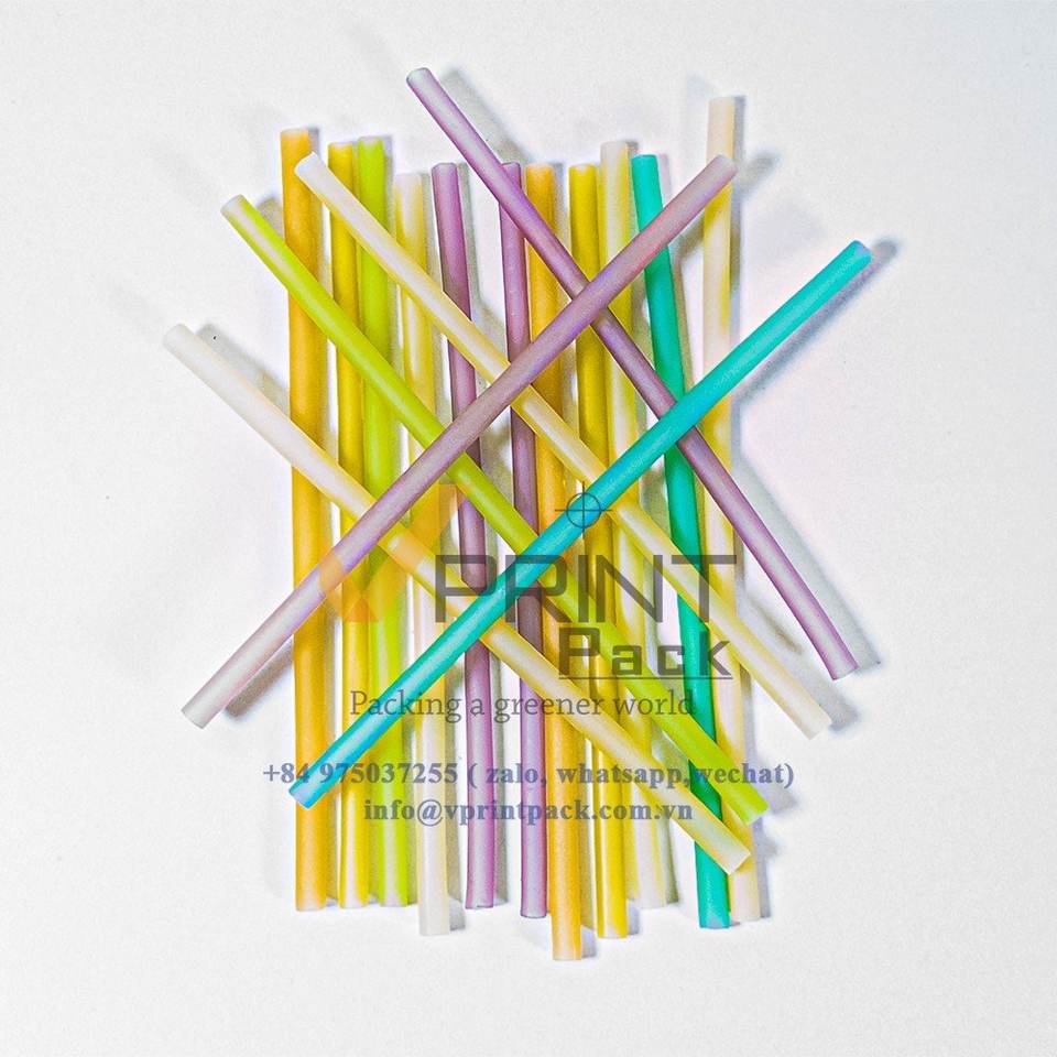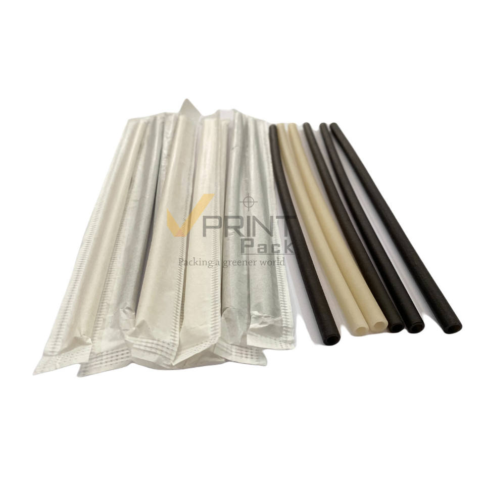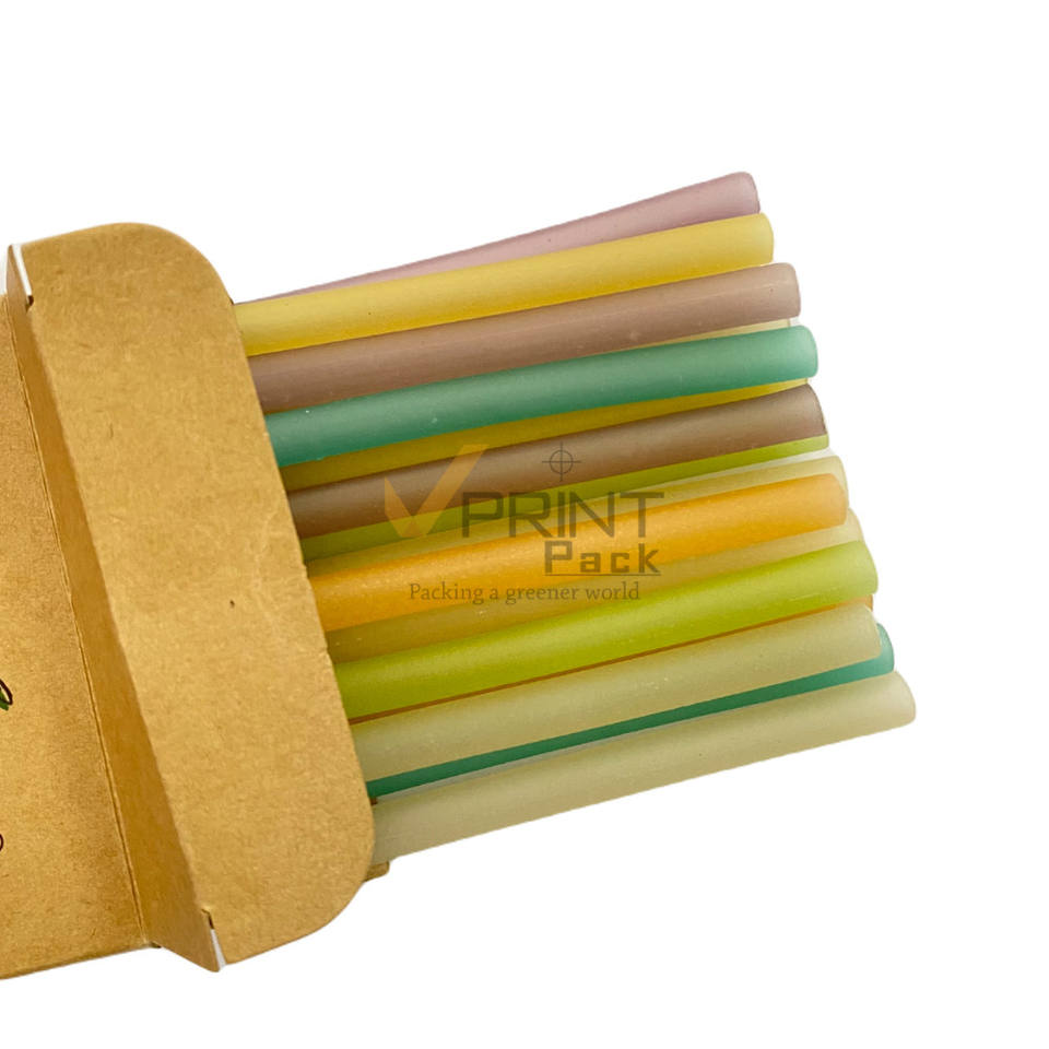 Pajitas ecológicas biodegradables y compostables de arroz de 10.25 pulgadas para bebidas, paquete de 100 unidades, en cajas rígidas de cartón Kraft para leche, envueltas individualmente.