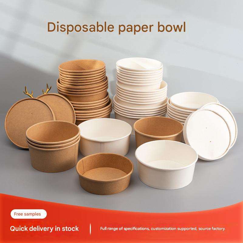 Envases de Alimentos Desechables Ecológicos 100% Biodegradables de Cartón Kraft para Llevar, Tazones de Papel para Fideos, Arroz, Ramen