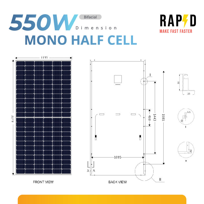 Módulo solar ecológico de 550W, diseño de media célula mono tipo N bifacial para rendimiento solar, producto superventas de Tailandia