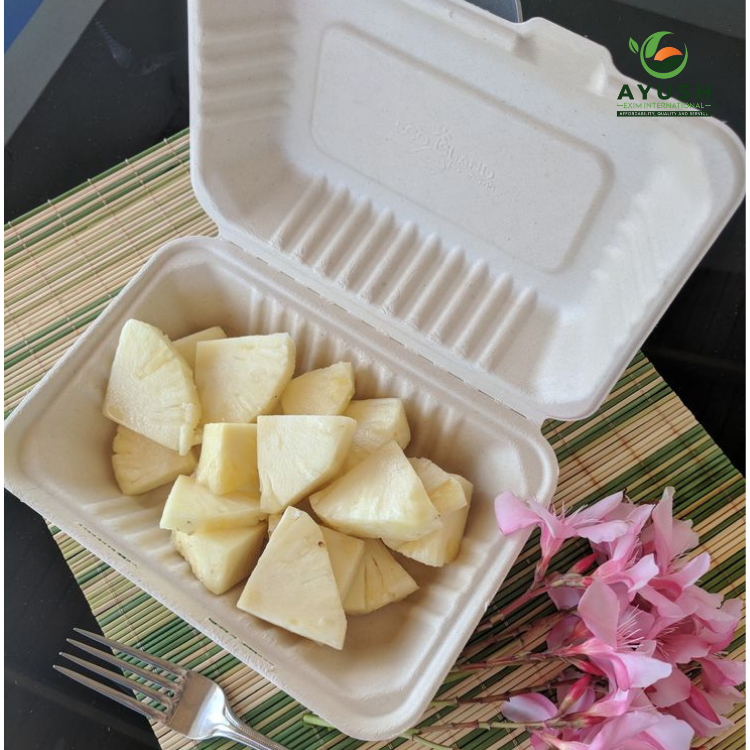 Contenedor Ecológico de Bagazo de 6x9 Pulgadas con Tapa para Puestos de Comida y Restaurantes de Centros Comerciales de Alto Volumen