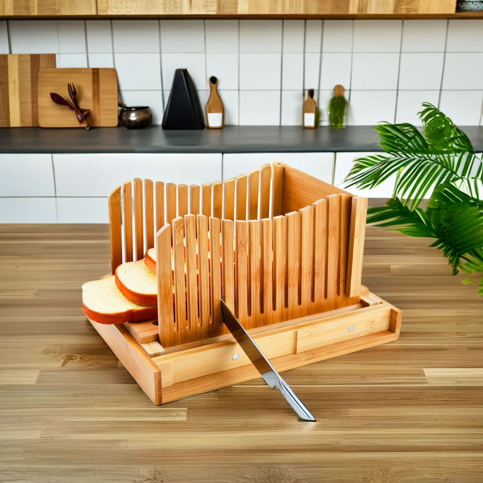 Cortadora de pan de bambú con cuchillo