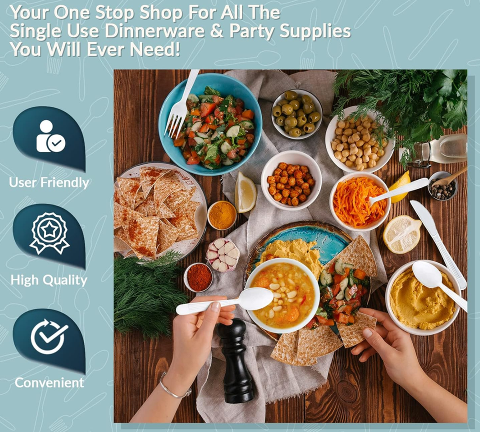 Juego de Cubiertos Desechables Biodegradables Ecológicos, Resistentes al Agua y Libres de BPA, para Fiestas, Más de 100 Piezas