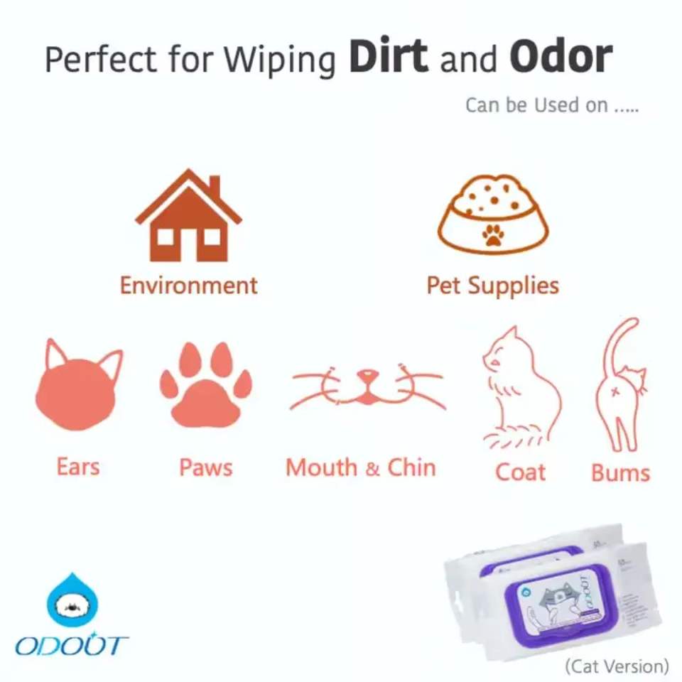 Nombre del producto:Eliminación de olores Toallitas húmedas antibacterianas para limpiar perros y gatos