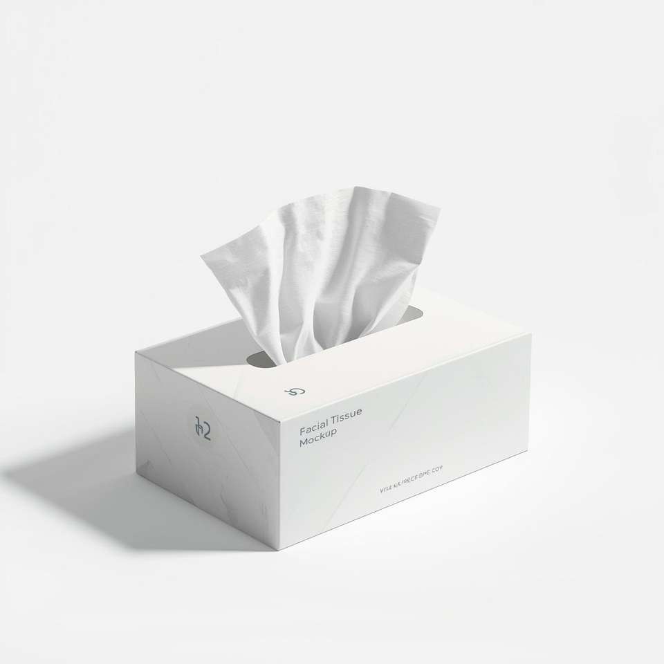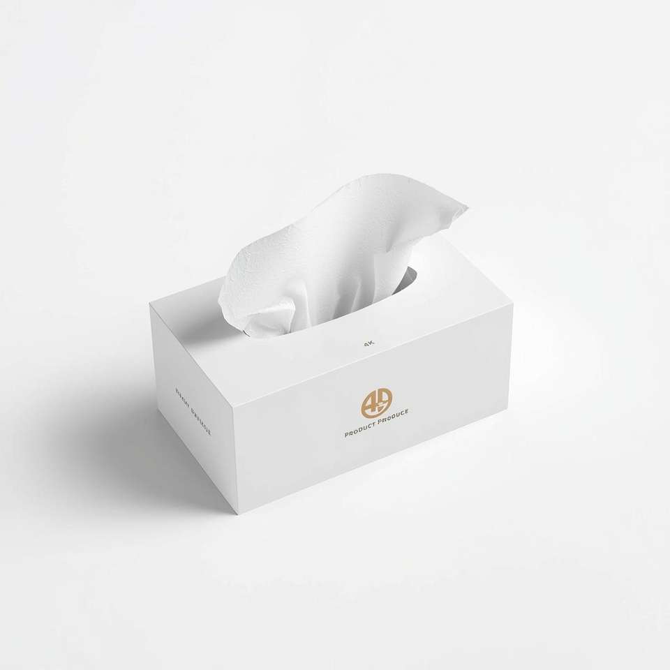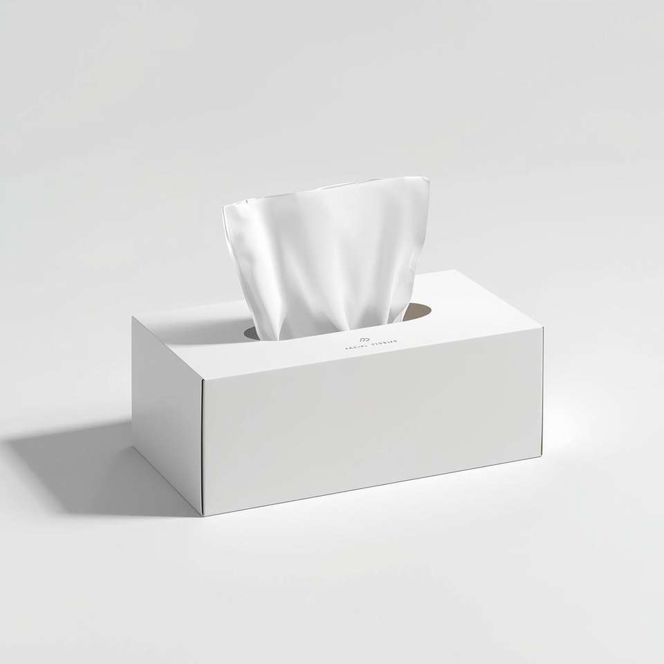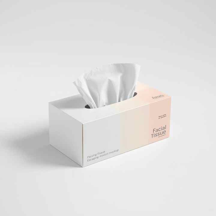 Caja de pañuelos faciales biodegradables y ecológicos hecha de materia prima sostenible para marcas ecológicas y el mercado ambiental.
