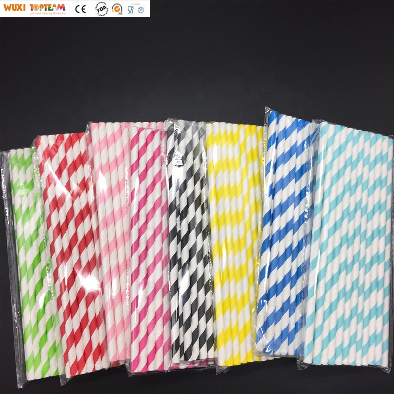 Pajitas de papel a rayas biodegradables ecológicas, pajitas de colores desechables para beber