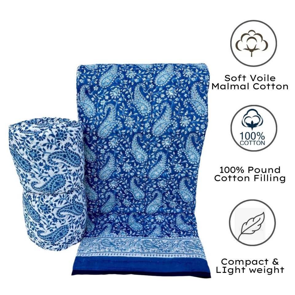 Ecológico Bohemio Kantha Ropa de cama Bloque de mano Impreso Algodón Edredón Suave Ligero Paisley Diseño Edredón King Size Hoteles