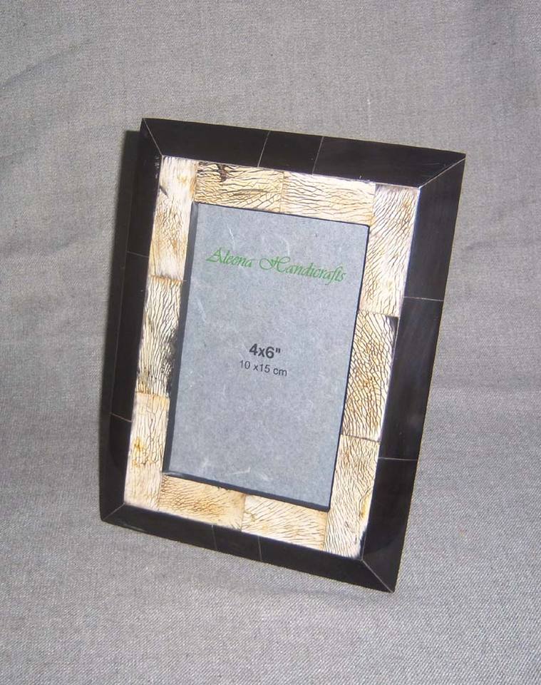 Marco de Fotos Artesanal Ecológico con Incrustaciones de Hueso Natural, Tamaño y Forma Personalizados, Hecho a Mano en India