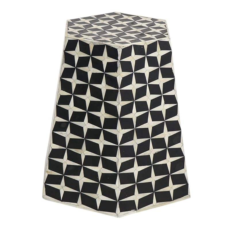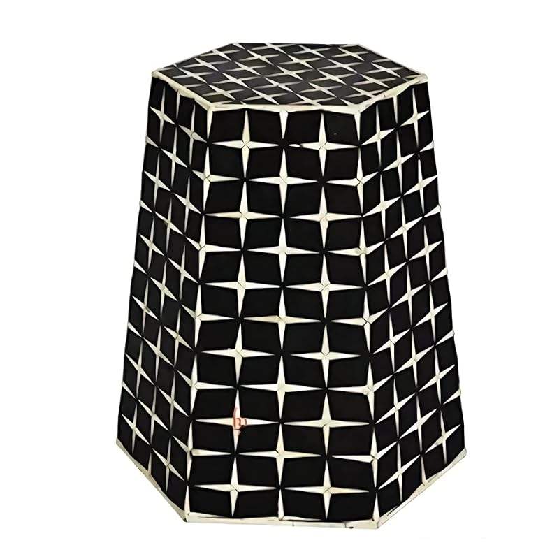 Taburete ecológico con incrustaciones de hueso, hecho a mano con materiales sostenibles para una vida consciente al mejor precio.