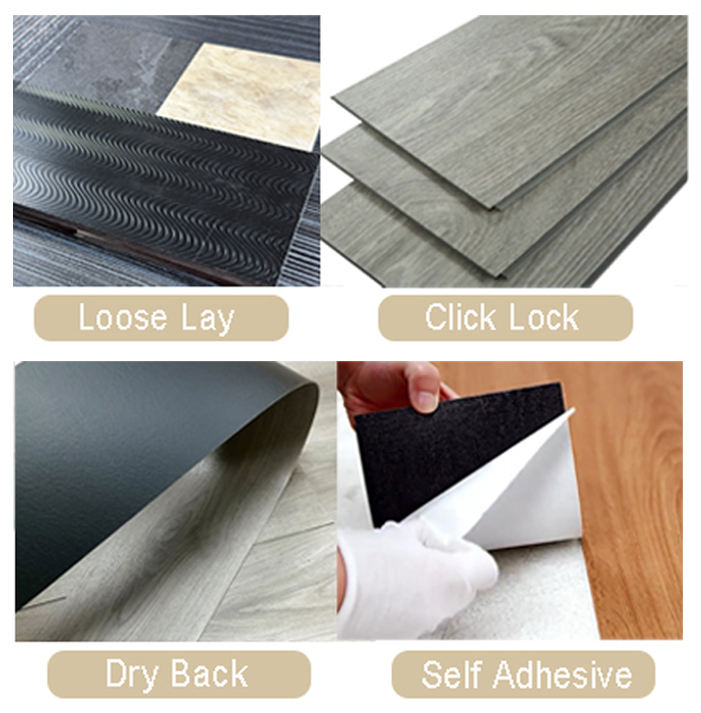 Método de instalación:Espalda seca/Auto Adhesivo/Click Lock/ Loose Lay
