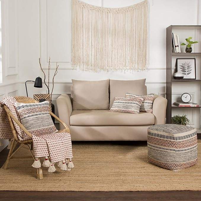 Puf Otomano Ecológico de Diseño Bohemio, Hecho a Mano, Estilo Nórdico Marroquí, Funda para Reposapiés