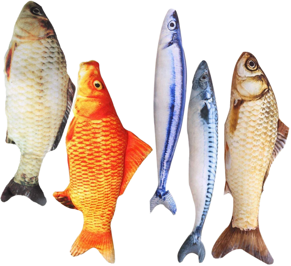 Juguete de algodón ecológico para gatos, pez de simulación de felpa, hierba gatera, carpa, Arowana, caballa, Lucio, juguete divertido para pájaros, viene en una bolsa