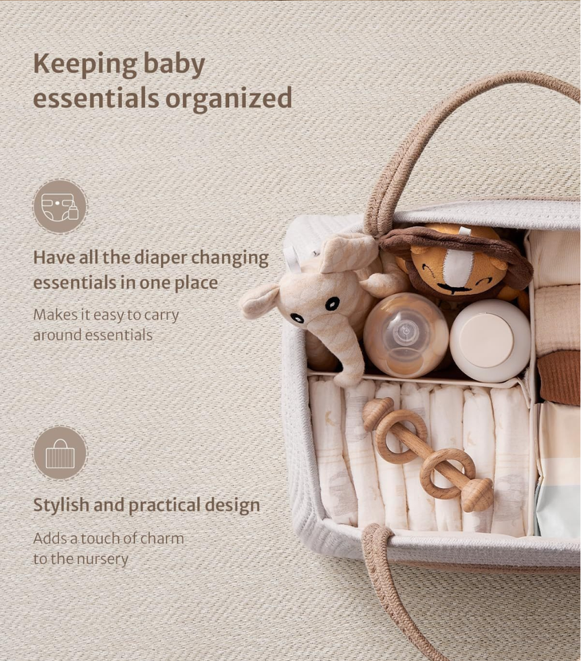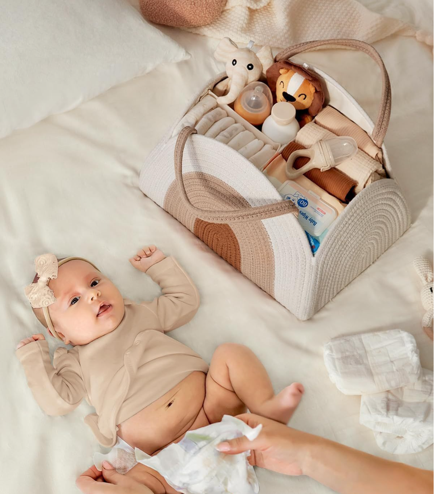 Bolsa Multifuncional Ecológica de Cuerda de Algodón para Mamá - Organizador de Guardería Tejido a Mano para Pañales y Artículos Esenciales, Almacenamiento Decorativo