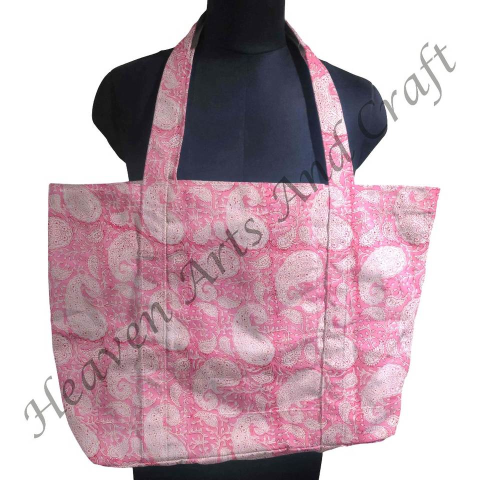 Bolsa de lona de algodón personalizable con estampado de bloques de mano personalizada ecológica con dos asas reciclable y reutilizable
