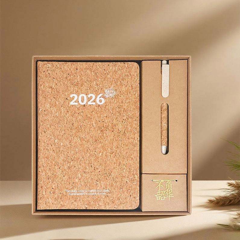 Agenda Ecológica Personalizada con Logotipo 2026, Set de Regalo al por Mayor, Cuaderno de Tapa Dura de Corcho y Posos de Café, Diario, Agenda, Día del Padre