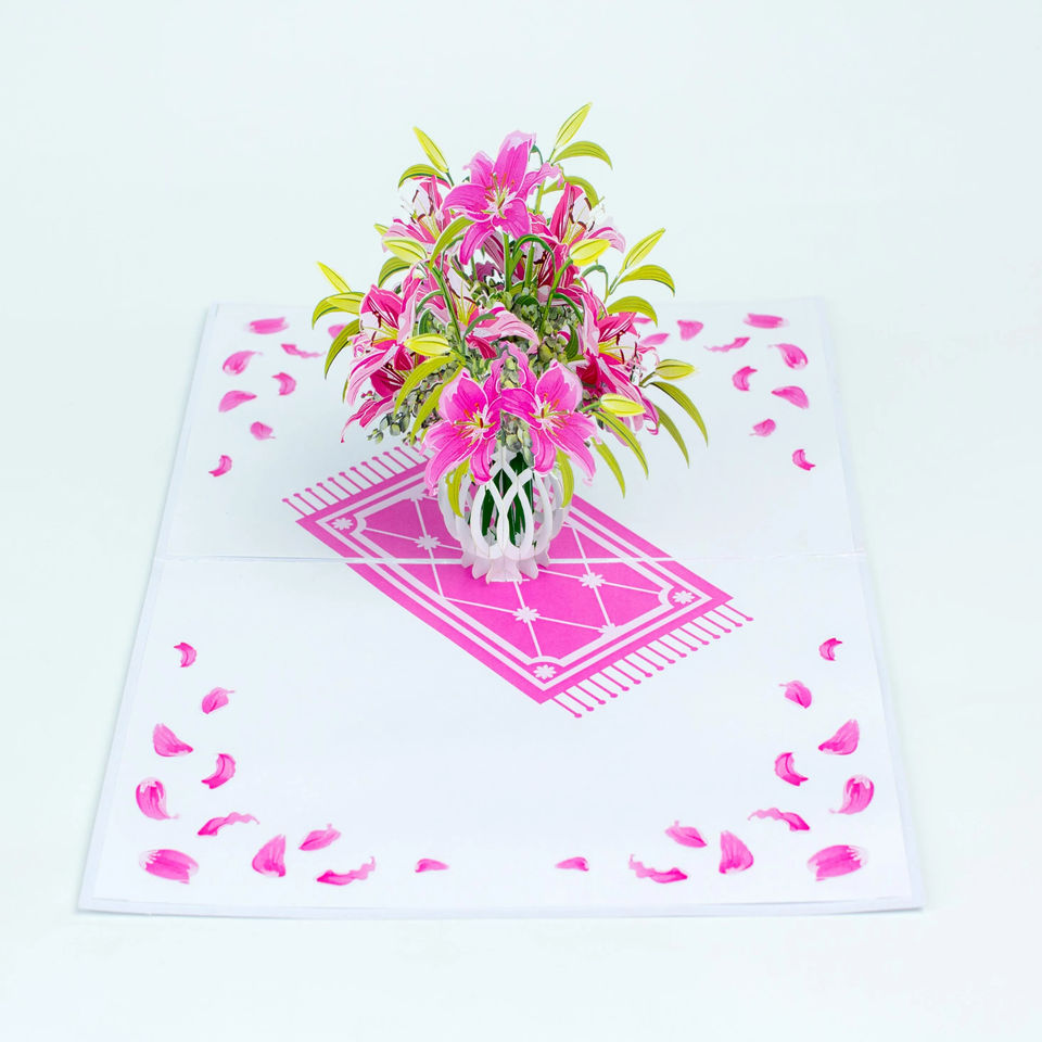 Personalización ecológica Tarjeta de regalo Ramo de flores Forma de flor y árbol Hecho a mano Pop Up Tarjeta de felicitación 3D artesanía