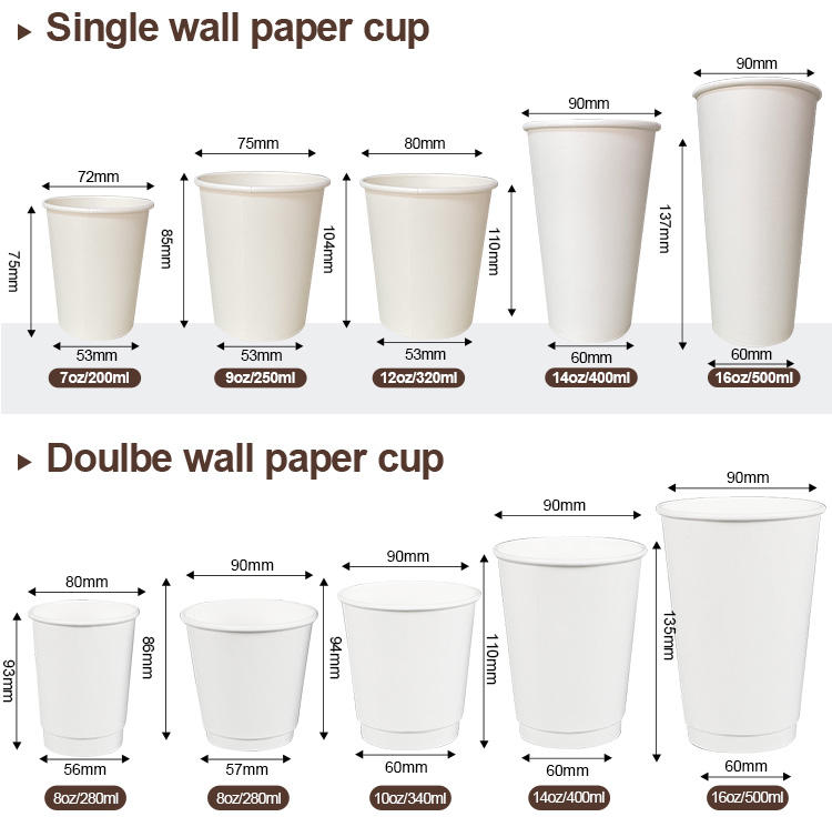 Vasos de Papel Desechables Ecológicos con Tapas, Venta al por Mayor, Impresión Personalizada, Vasos de Pared Simple/Doble para Bebidas Calientes y Frías de 4oz-16oz