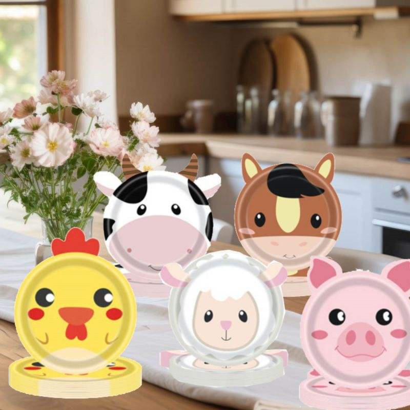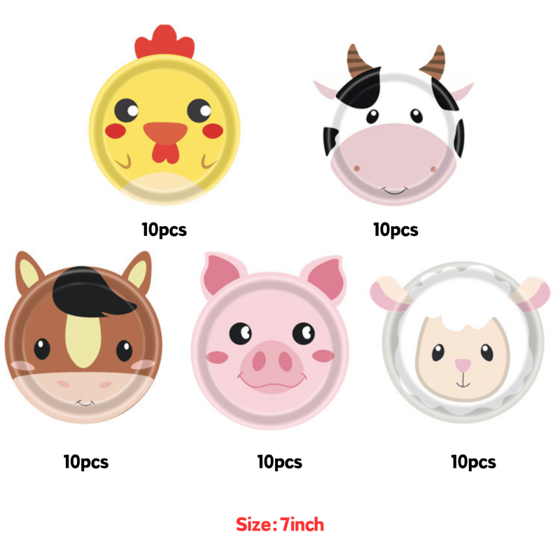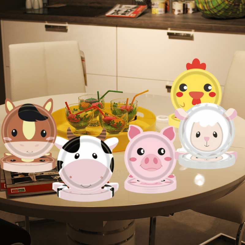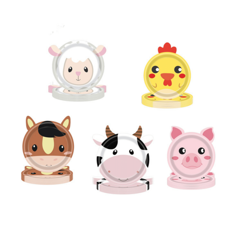 Platos desechables respetuosos con el medio ambiente, plato de papel para fiesta de animales de granja, plato de cumpleaños desechable con forma de Animal de granja, Fiesta infantil