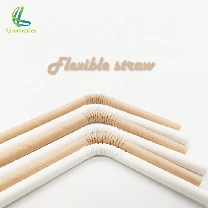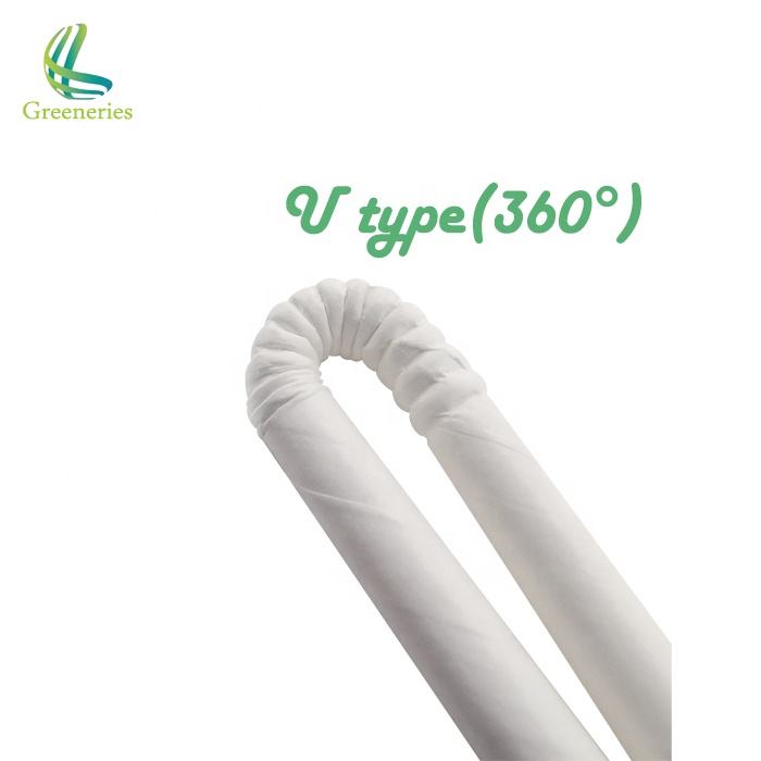 Pajitas de papel desechables respetuosas con el medio ambiente, diseño Popular, tipo U, flexibles, blancas