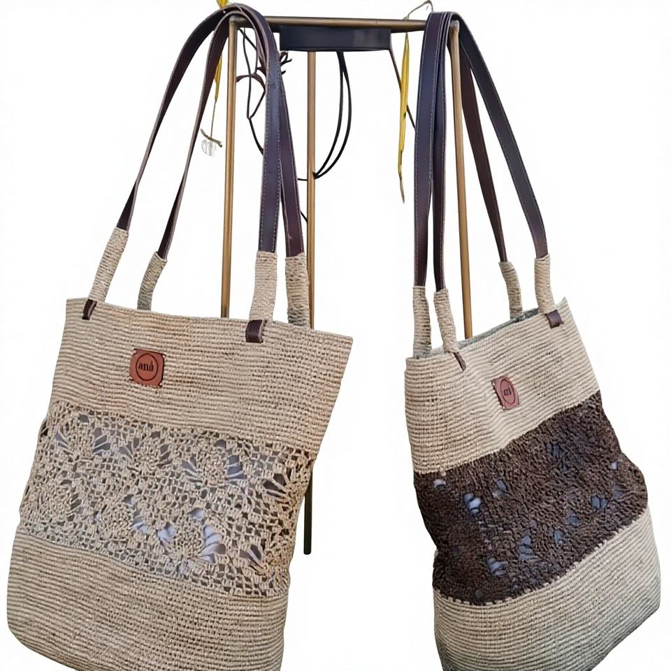 Bolsa de Compras Ecológica Hecha a Mano de Pasto Marino con Forro de Rafia, Tejida Grande para Mujer, para Viajes y Uso Diario