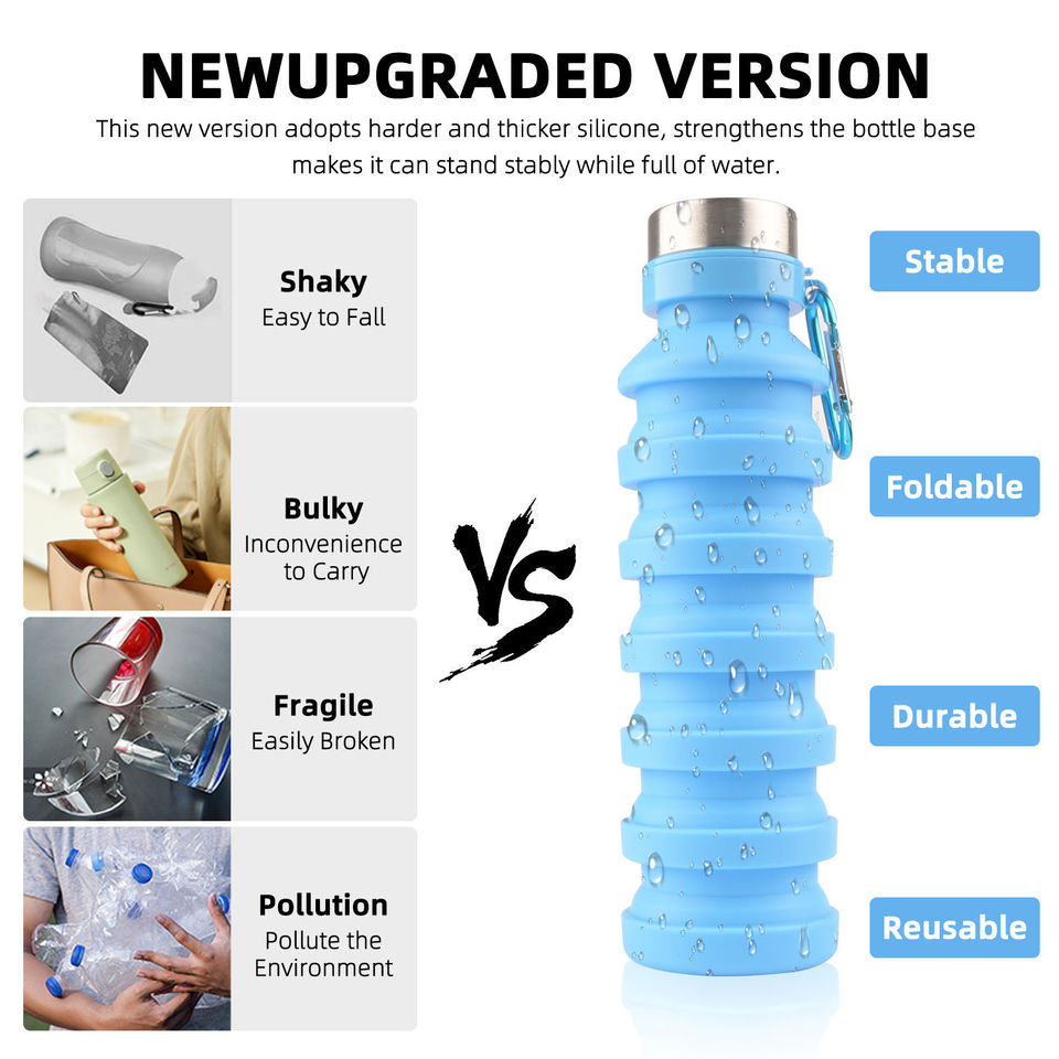 Botella de Agua Plegable Ecológica, Libre de BPA, Tipo Shaker, 550 ml, Botella de Silicona Plegable