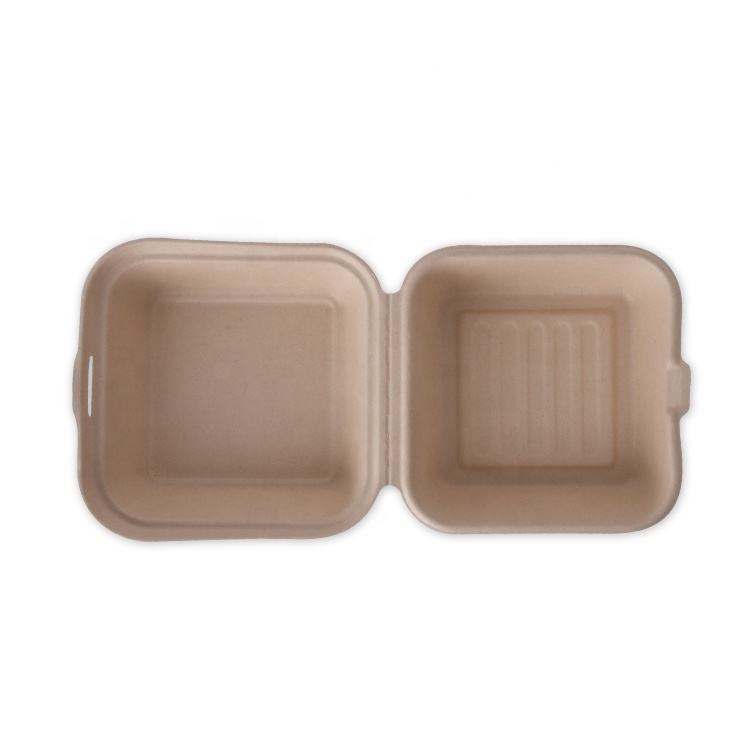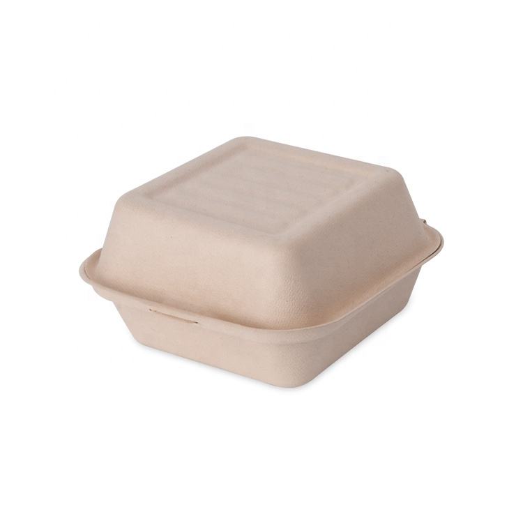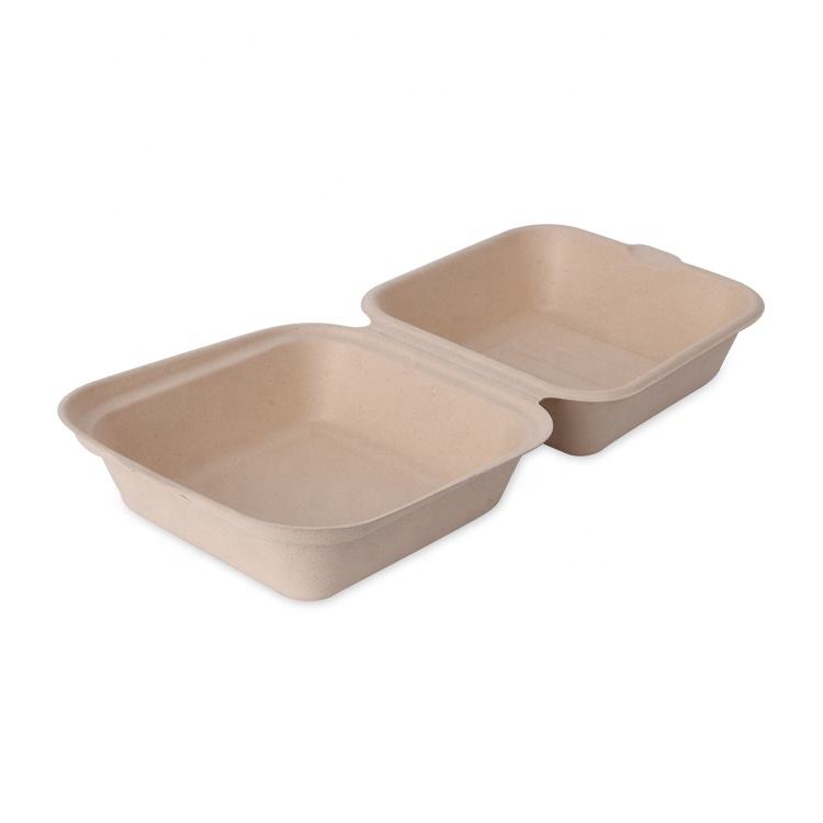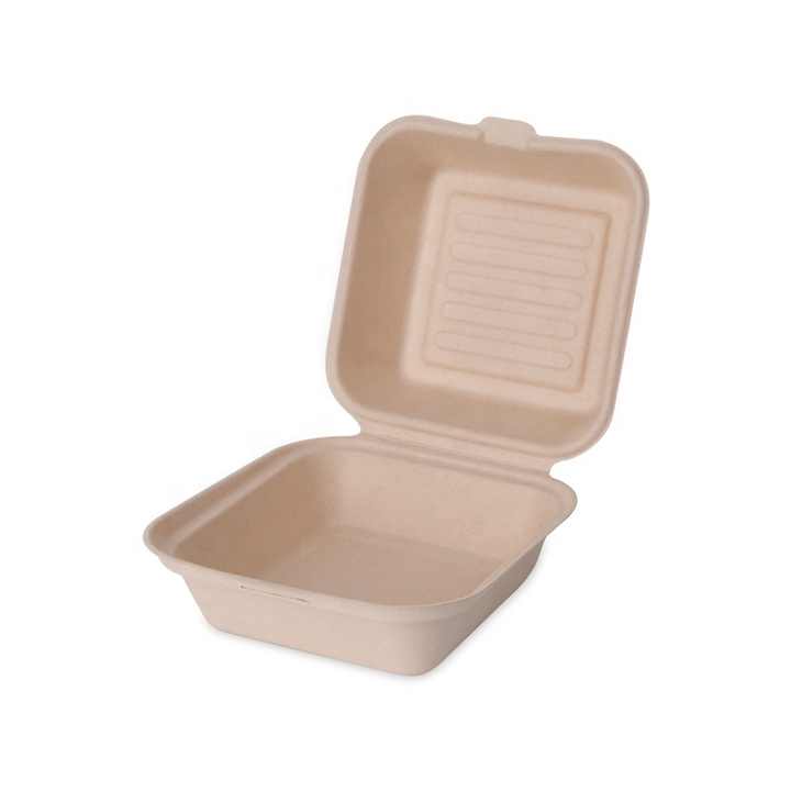 Envase de Alimentos Ecológico Tipo Concha, Caja Biodegradable de Caña de Azúcar para Hamburguesas, 308x144x78mm, Marca BIOPACK, Impermeable