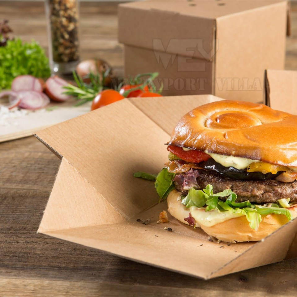 Caja de hamburguesas de papel Kraft ecológica de alta calidad, embalaje personalizado al por mayor, acabado mate con ventaja UV para uso Industrial