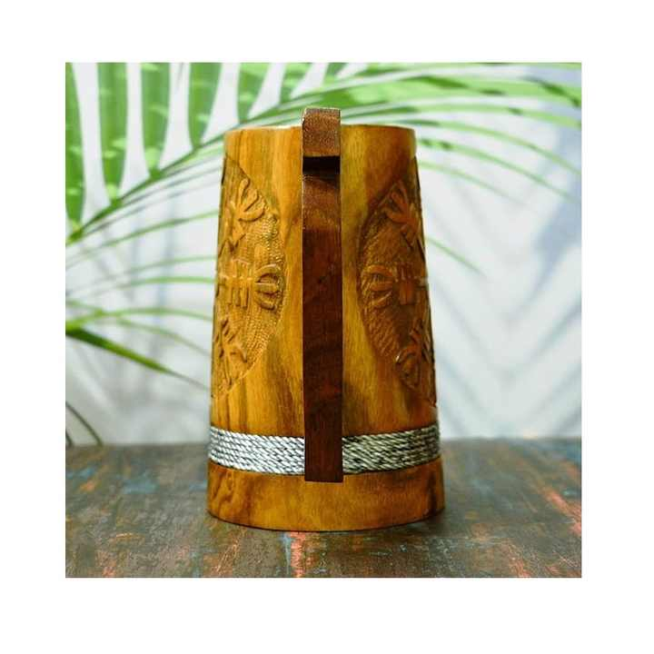Jarra de cerveza de madera artesanal ecológica con asa y diseño tallado a precio barato