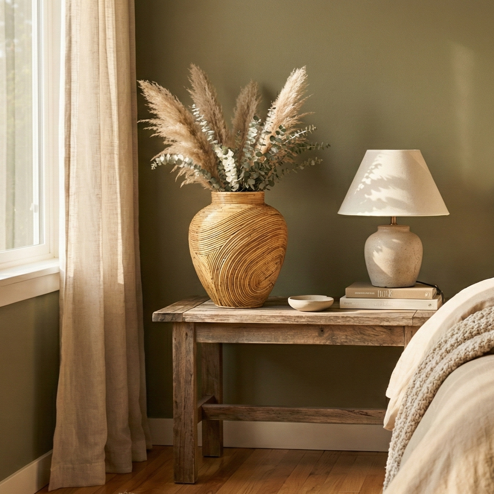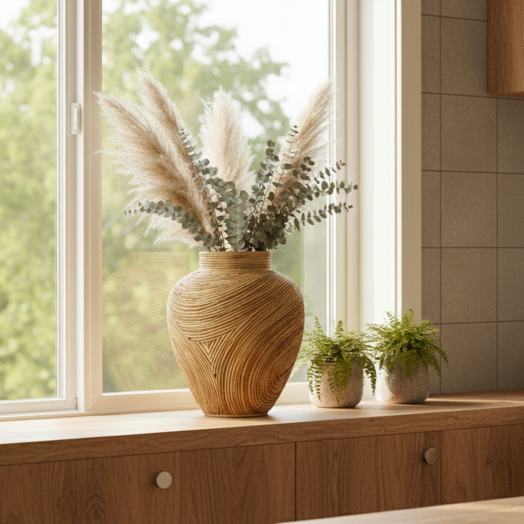 Jarrón de Mesa Minimalista, Ecológico, Hecho a Mano, Duradero, de Ratán y Bambú de ECONA para Decoración