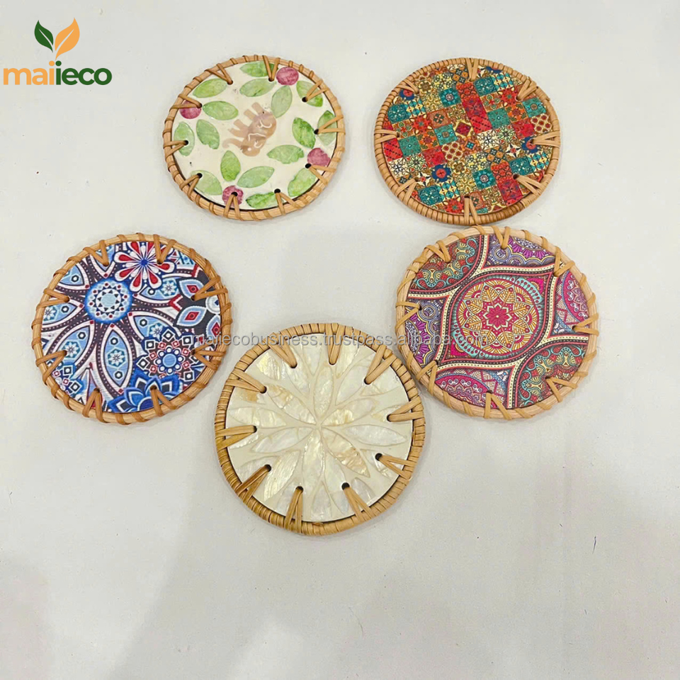 Posavasos de ratán Mandalas vintage de taza redonda de alta calidad