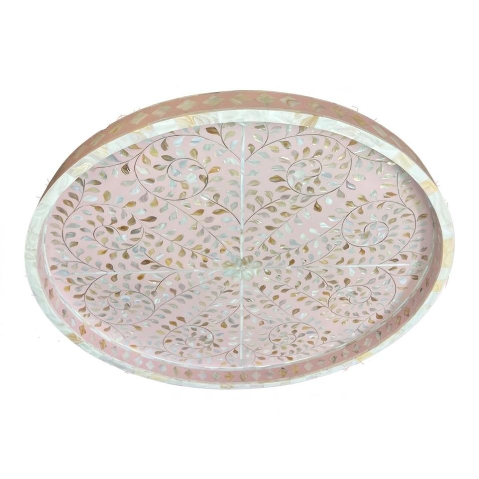 Bandeja de servir de ratán ecológica tejida a mano con base de nácar, cesta redonda decorativa de mimbre para almacenamiento y exhibición en la cocina