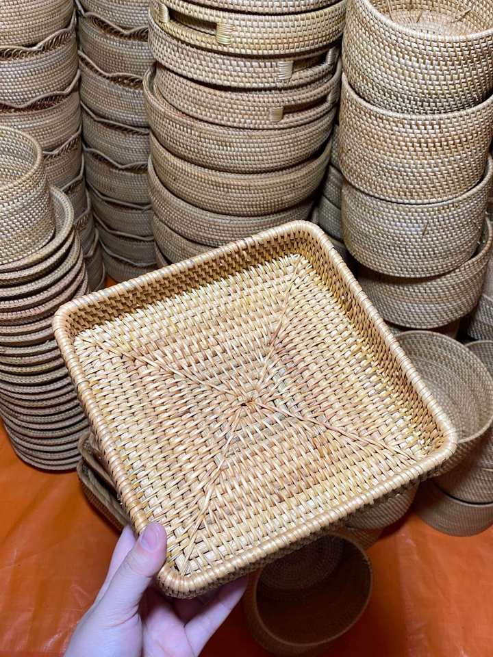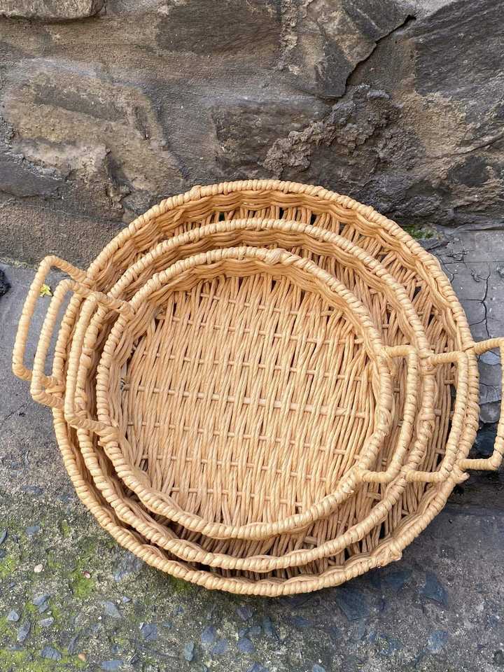 Cestas y Bandejas de Ratán Tejidas a Mano Ecológicas, Duraderas, Decoración para el Hogar, Artesanías