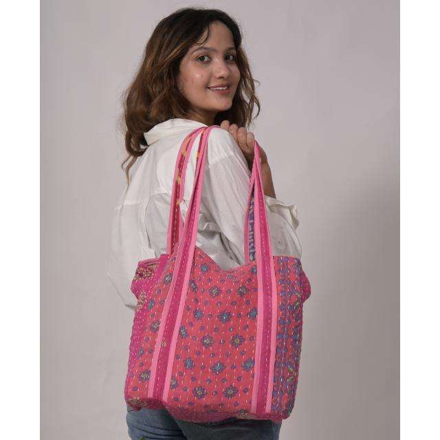 Bolso de mano Kantha ecológico, bolso indio hecho a mano de algodón bohemio, bolso de hombro Multicolor para mujer, bolso de compras de estilo Vintage
