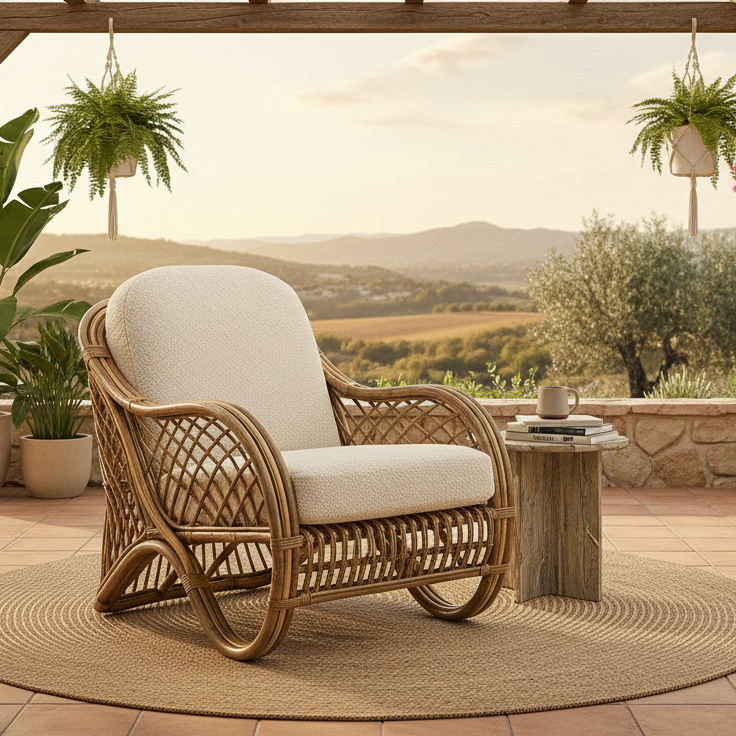 Silla de Comedor de Ratán para Exterior, Ecológica, Ligera, Duradera, Cómoda y Minimalista, para Villa y Hotel