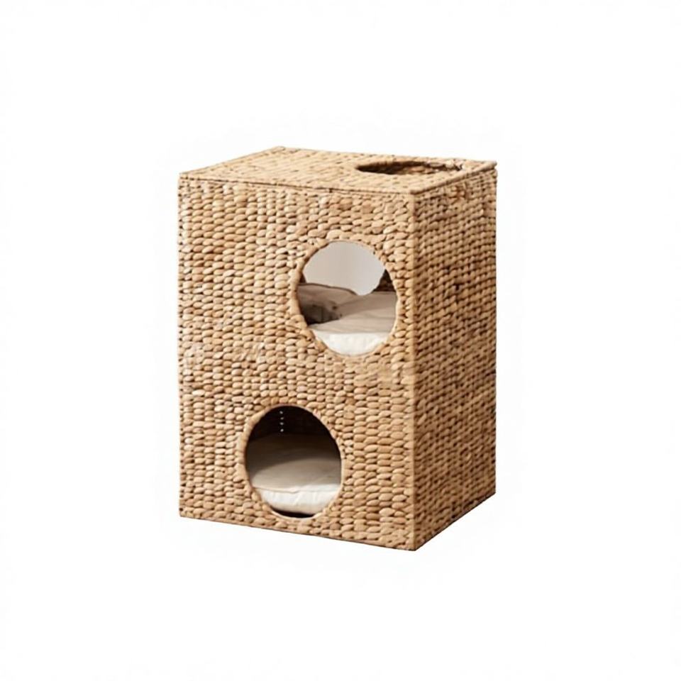 Casa para Gatos de Mimbre Apilable Ligera y Ecológica, Torre para Gatos de Ratán, Casa de Juegos para Gatos Tejida a Mano, Jacinto de Agua de Vietnam