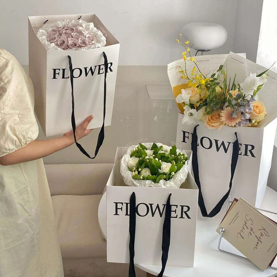 Bolsas de Regalo de Papel Ecológicas de Lujo con Impresión Personalizada, Cuadradas, Blancas, para Ramos de Flores, Proveedor Mayorista