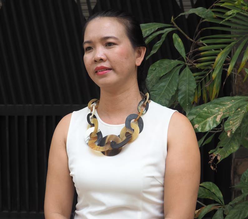 Collar de Anillos y Cuentas de Cuerno Natural Moderno y Ecológico para Decoración de Bodas, Artesanía de la India por Perfect Enterprises