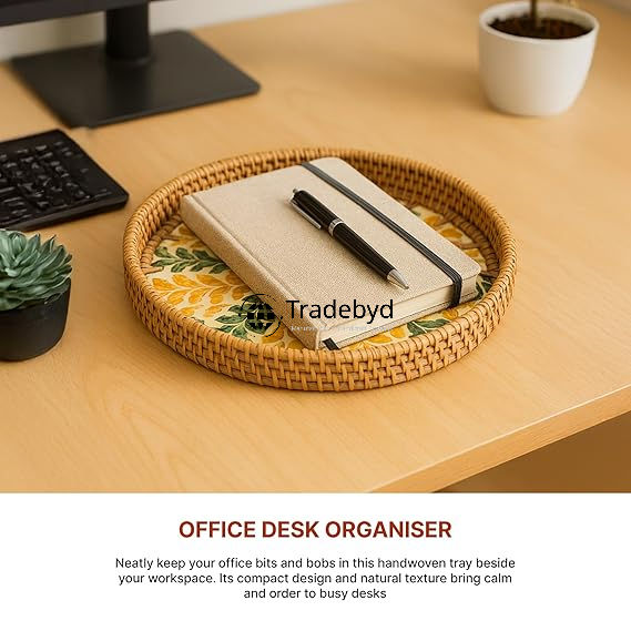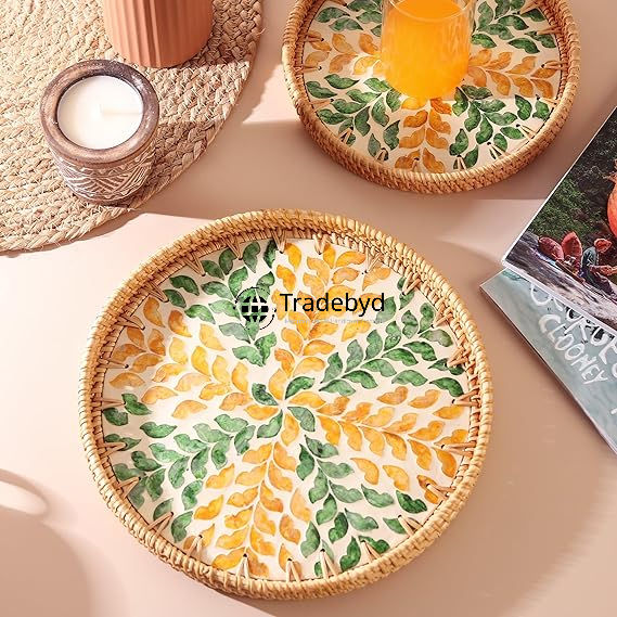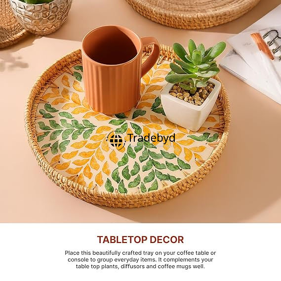 Bandeja de Servicio Móvil de Ratán Moderno Ecológico de Primera Calidad, Hecha a Mano, Elegante, para el Hogar, Tradebyd