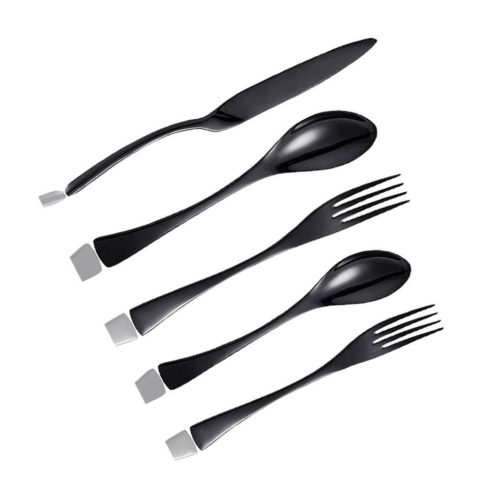 Juego de cubiertos de acero inoxidable moderno y ecológico, 5 piezas, estilo americano, diseño negro elegante y elegante