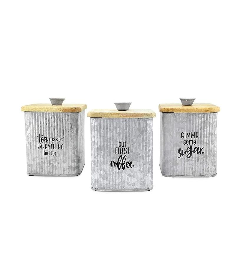 Recipiente de cocina galvanizado multiusos ecológico con tapa segura para almacenar harina, arroz, refrigerios y artículos esenciales diarios de forma segura.