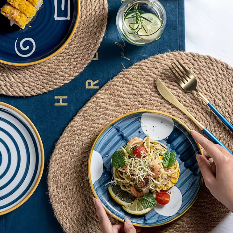 Mantel de mesa de fibra de Yute natural ecológico, decoración de comedor tradicional clásica con planta de flores y posavasos para bebidas