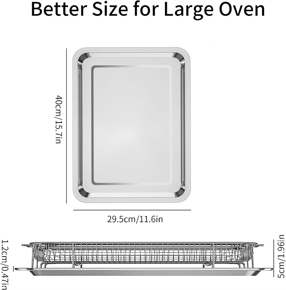 Bandeja para Hornear Cuadrada Antiadherente Ecológica de Acero Inoxidable y Cesta para Freidora de Aire para Hornear y Asar