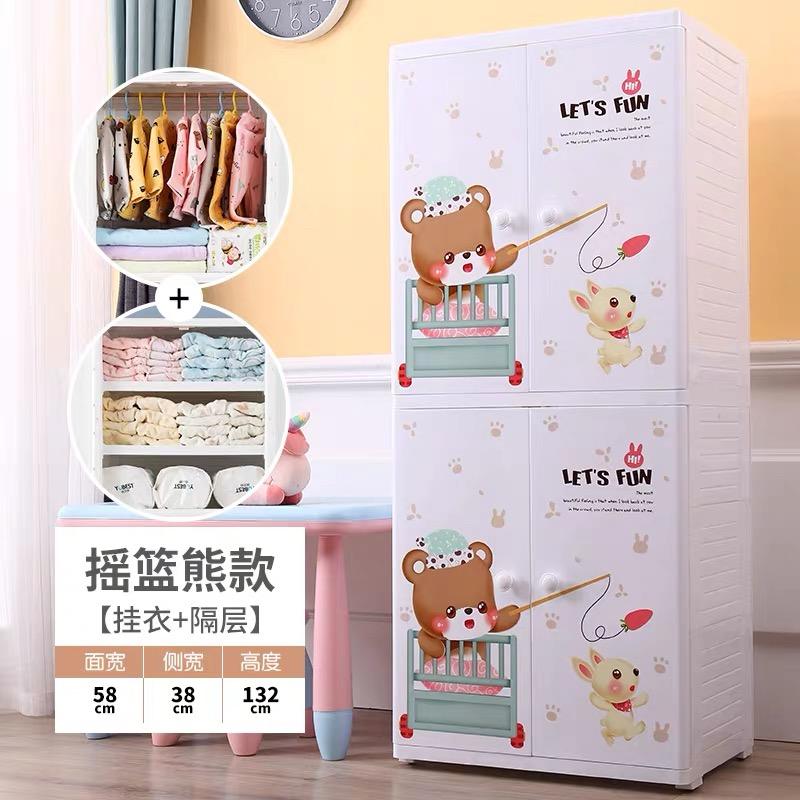 Armario de Plástico Ecológico de 2 Niveles con Puertas Abatibles de PP, Armario Organizador de Ropa con Perchero, Armario de Plástico para Niños