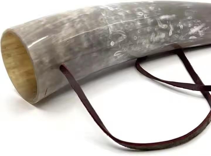 Cuerno Nórdico Pulido Ecológico de Cuerno de Búfalo Natural con Correas de Cuero - Estilo Feng Shui y Religioso