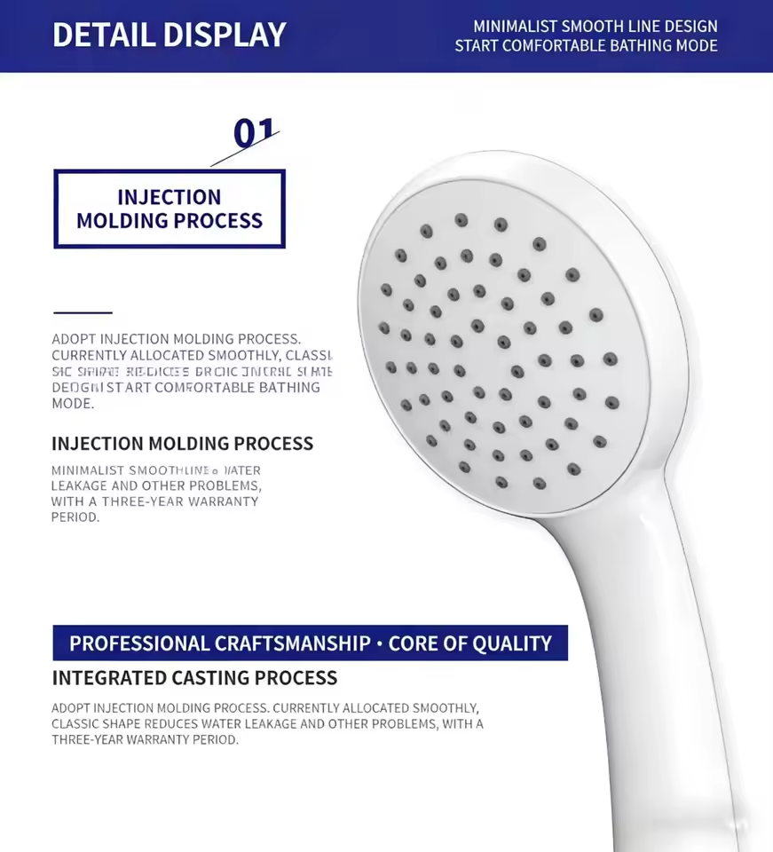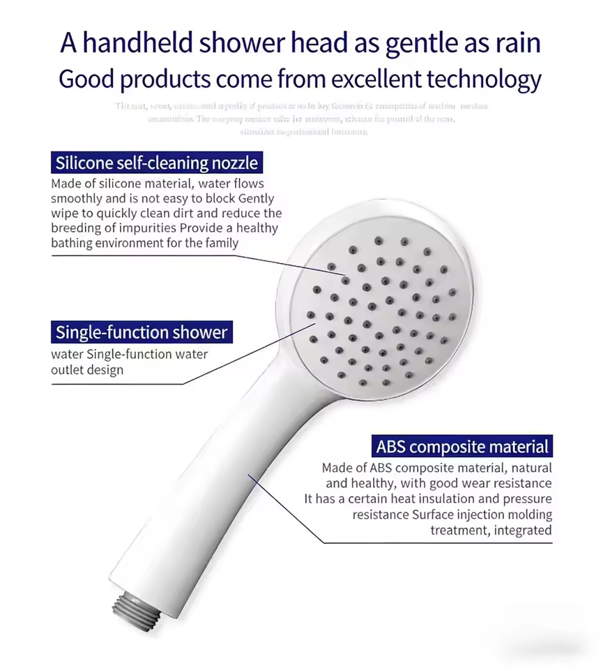 Ducha de Mano Portátil Ecológica de Plástico, Blanca, de Función Única, con Rociador de Lluvia Redondo para Baño