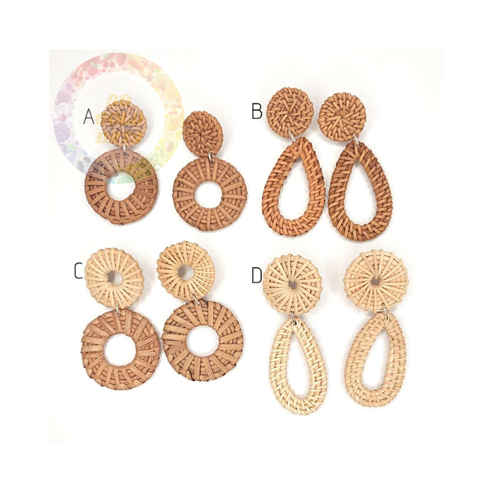 Pendientes de ratán ecológicos-Joyería de declaración de moda ligera para mujer