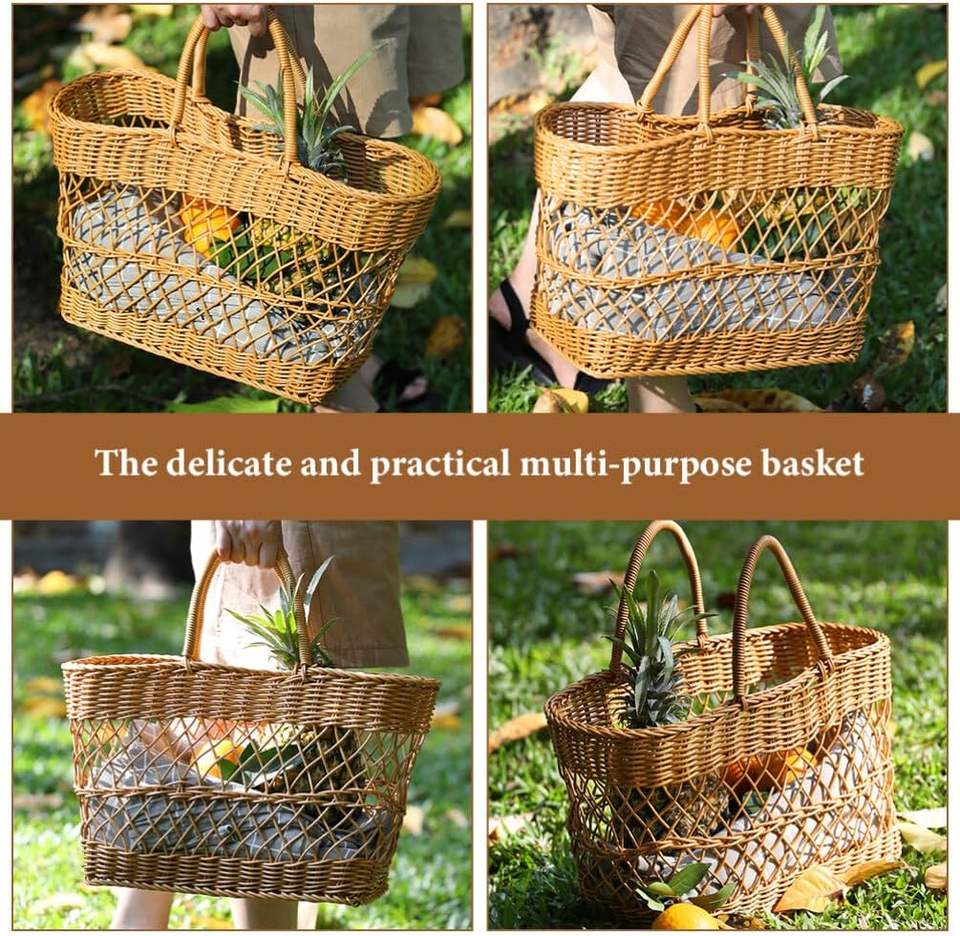 Cesta de Picnic Ecológica de Mimbre, Cesta de Almacenamiento Multifuncional con Asa para Organización del Hogar, Bolsa de Compras