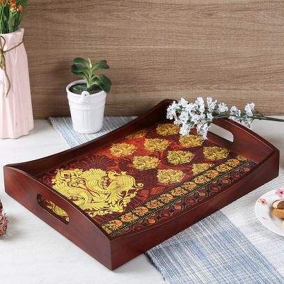 Bandeja de servicio de mayordomo de madera de bambú rectangular ecológica con asas laterales para uso de mesa de café de desayuno