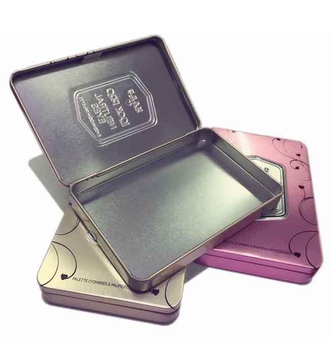 Caja de hojalata rectangular ecológica personalizada para sombras de ojos, embalaje cosmético vacío, paleta de caja de hojalata con imán, reciclada