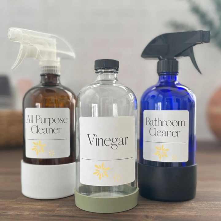 Botella Boston Ecológica Recargable de 16 oz, Transparente, Color Ámbar Azul Cobalto, con Funda de Silicona y Tapa/Pulverizador para Limpieza